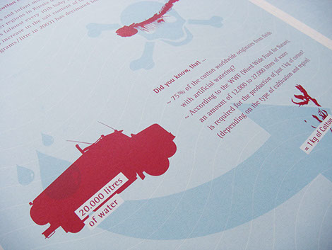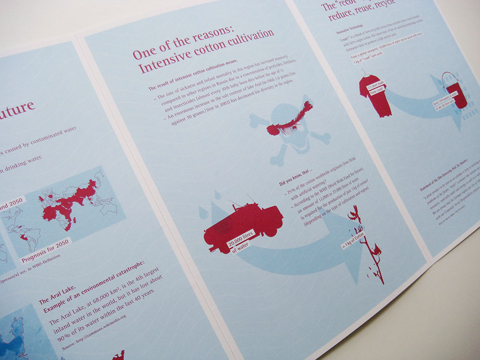 Deutsch, und von Hangtags. In der Broschüre werden Produktvorteile und Hintergründe zur Entwicklung der Marke erläutert. Informationsgrafiken visualisieren die Probleme