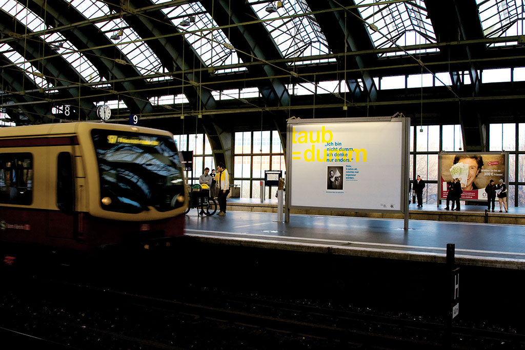 Großflächenplakaten, Plakaten, Foldern und einem Kartenspiel zum Thema Gehörlosigkeit (in Zusammenarbeit mit dem Netzwerk Gehörloser-Stadtverbände e.V.). Die Kampagne „Wir können alles, nur nicht hören“ war Europaweit eine von zehn Gewinnern beim Wettbewerb »Ideas that Matter« im Jahre 2009. Gemeinschaftsprojekt mit Nadja Riedel.